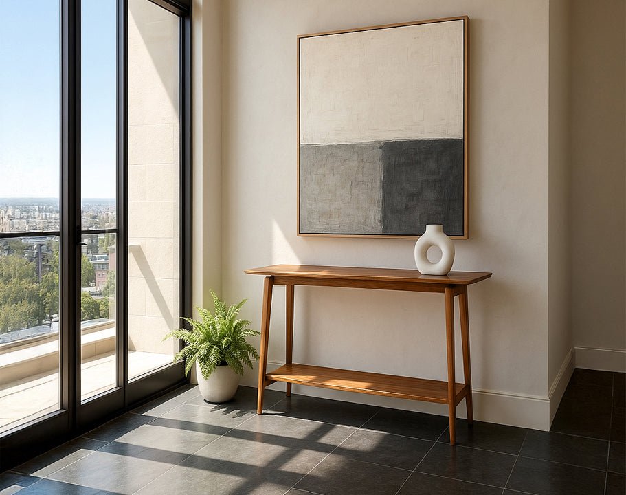 Elevate your space with the Antares Console Table—a striking fusion of timeless Mid-Century design and modern sophistication.