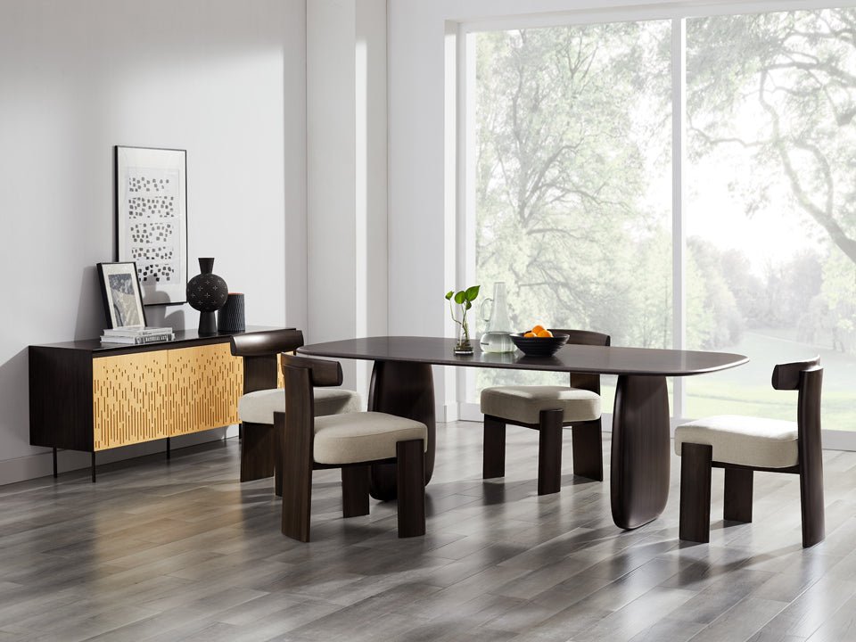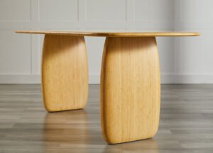 Greenington’s Aria dining table is a bold expression of modern luxury—where stunning design meets eco-conscious craftsmanship. With its sleek silhouette and dramatic elliptical pedestal bases, Aria offers both visual impact and generous legroom, making every gathering feel effortless and elegant. Designed with both sustainability and craftsmanship in mind, Aria makes a statement in any dining room with its refined yet commanding presence.