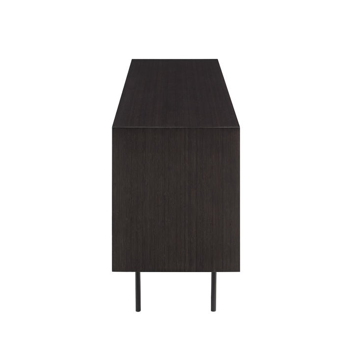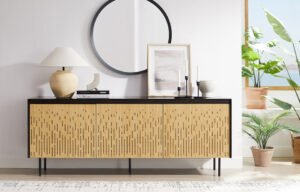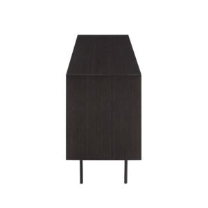 Designed with thoughtful detail, Hanna features a sleek black steel base, recessed pulls, soft-close doors with magnetic closures, and a finished back—allowing it to shine from every angle. Inside, generous concealed shelving keeps your essentials neatly organized, whether placed in a chic entryway, sophisticated dining room, or luxe living area.