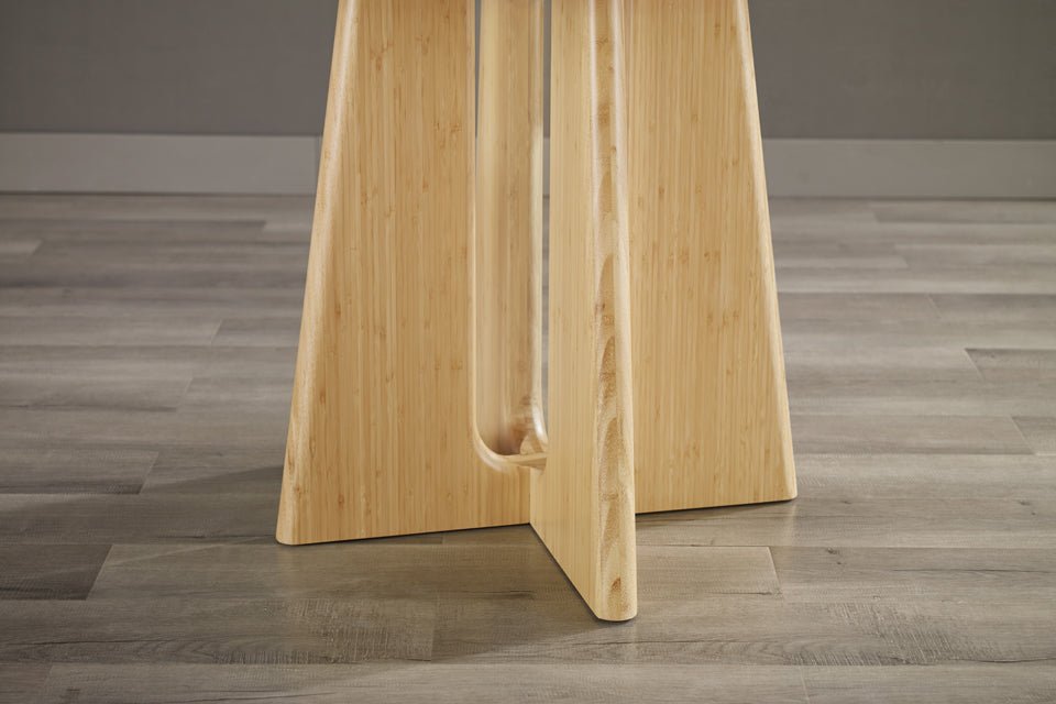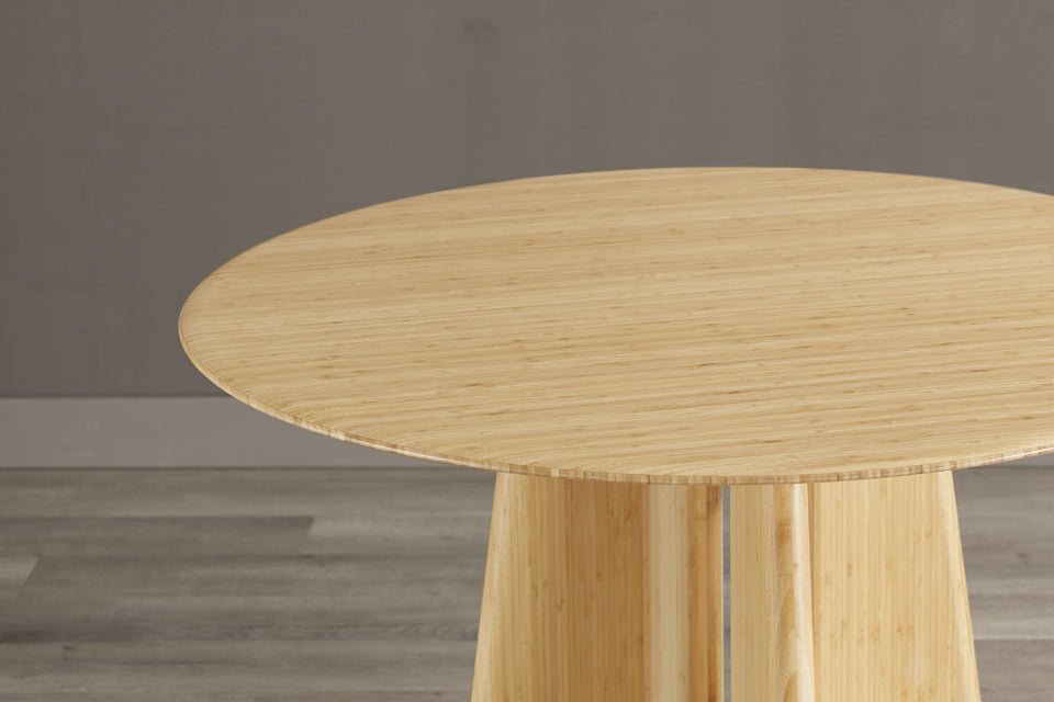 Embrace sustainable luxury with the Luna dining table, a stunning celebration of minimalist elegance. Meticulously crafted from 100% solid Moso bamboo, Luna’s sleek geometric silhouette and sculptural apex base bring refined sophistication to any space. The softly rounded legs taper upwards, not just to showcase beautiful lines, but also to provide generous legroom for ultimate comfort.