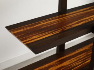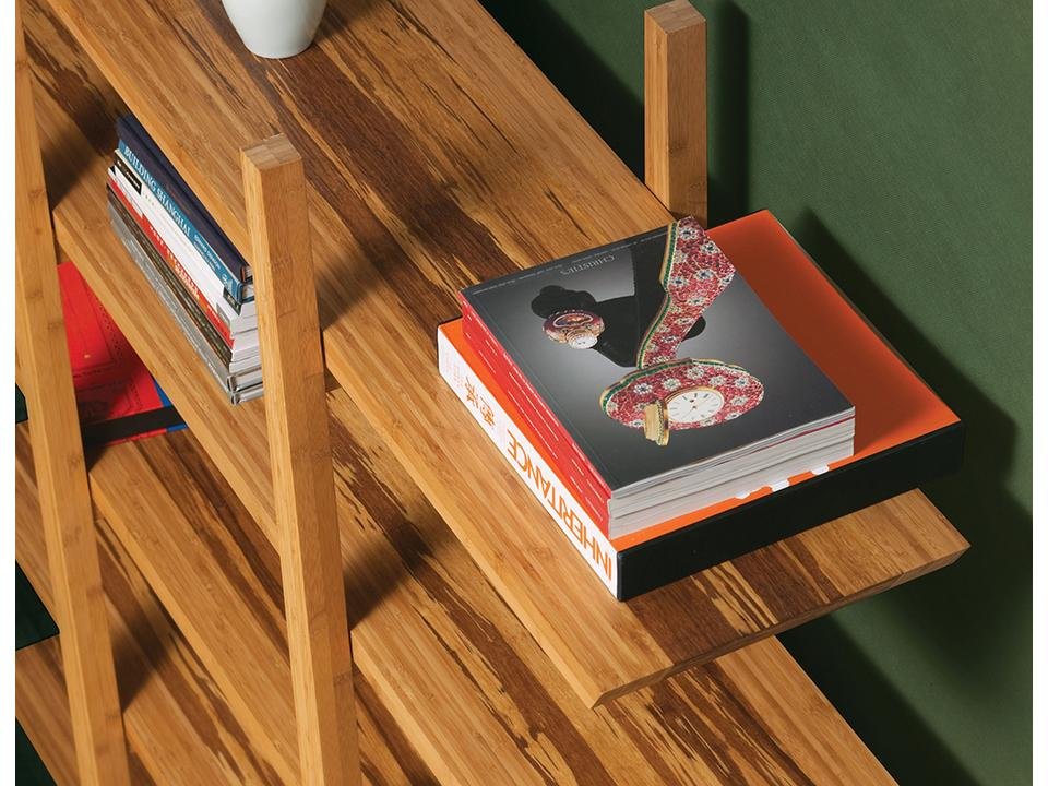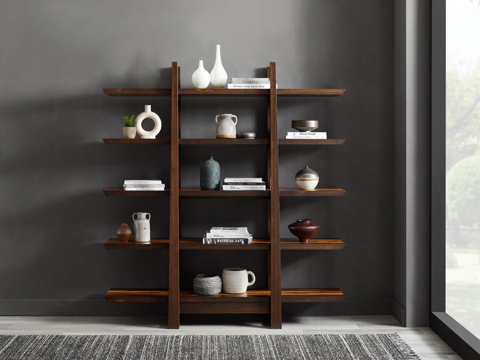 Ideal for both home and office, Magnolia is more than just a shelf—it’s a statement of sustainable living. Shown in a rich Black Walnut finish, the transparent stain is hand applied, creating a gorgeous finish to accentuate the bamboo grain’s natural beauty. Its five spacious solid bamboo shelves, each accented with Exotic Tiger bamboo inlays, offer both storage and display options, stacking high to combine form and function seamlessly.