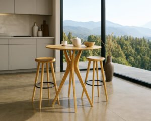 Mimosa Bar Table – Sculptural Sophistication in Sustainable Form Graceful and architectural, the Mimosa Bar Table elevates any space with its striking sculptural base and refined proportions. Designed to offer generous legroom and a comfortable dining experience, Mimosa’s profile balances fluid curves with precise angl