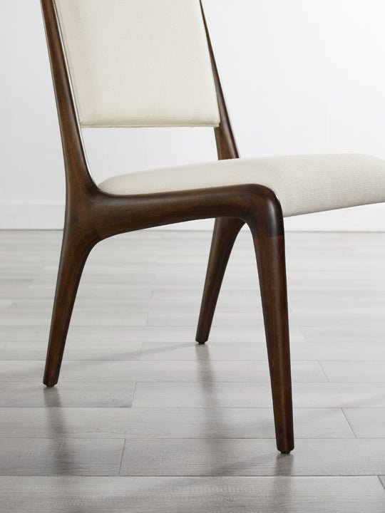 The Torino dining chair offers a striking blend of elegance and sophistication, with its graceful curves forming a continuous, flowing silhouette. Torino’s solid bamboo frame is smooth and curved while the softly upholstered seat and backrest offers softness and comfort, highlighting the chair’s sculptural shape. Its refined design features are slender, sinuous lines paired with tailored upholstery, making it an ideal addition to any contemporary dining space. With meticulous craftsmanship, this dining chair seamlessly combines functionality and exceptional design.