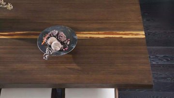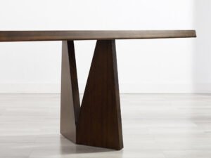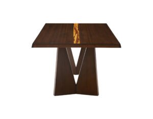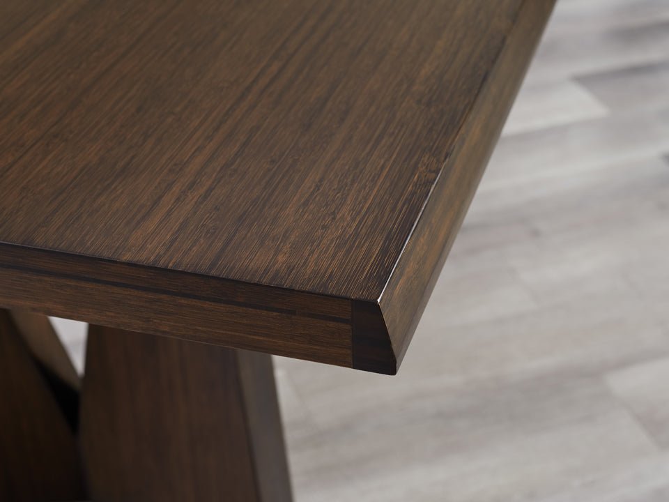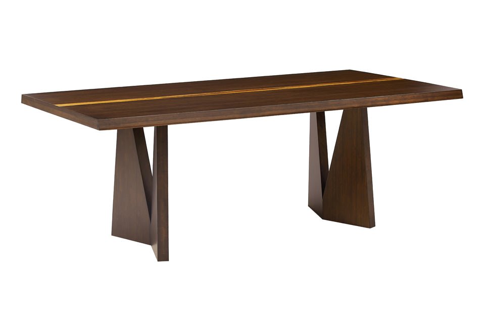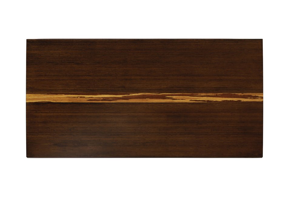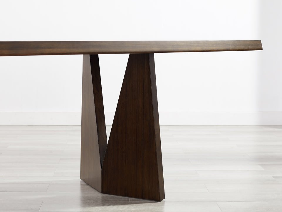 A true statement piece, the Torrey redefines modern elegance with its sculptural silhouette and remarkable craftsmanship. Designed to captivate, it features an architecturally inspired double pedestal base with four geometric legs and a striking beveled-edge rectangular top. At the heart of the design, a dramatic inlay of Exotic Tiger bamboo commands attention—its flowing grain and vivid contrast infuse the table with natural artistry and visual depth.