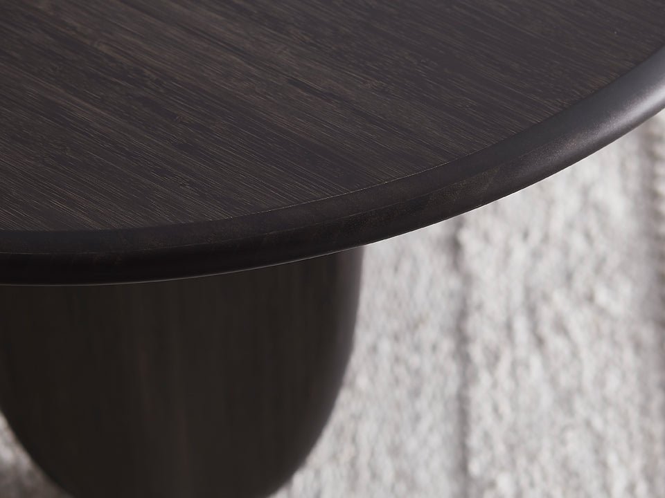 Crafted from solid bamboo and hand-finished in a rich Caviar tone, Zephyr’s asymmetrical base delivers a chic architectural vibe, while the generous tabletop invites everything from morning coffee to stylish décor moments. It’s made to anchor your room and spark conversation.